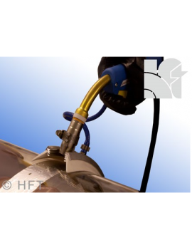 Trainard plat pour soudge de tôles - La torche équipée d'un trainard maintient plus longtemps le bain de fusion et la zone encore affectée thermiquement sous une atmosphère inerte d'argon, permettant ainsi une opération de soudage plus rapide et minimisant le risque d'oxydation et de fissuration par l'hydrogène. Des joints en caoutchouc siliconé assurent le niveau d'étanchéité nécessaire de part et d'autre du cordon. Ce dernier est brillant et propre, sans oxydation du métal déposé et de la zone thermiquement affectée. Livré avec un collier de serrage s'adaptant à n'importe quelle torche MIG, TIG ou PLASMA, manuelle ou automatique.