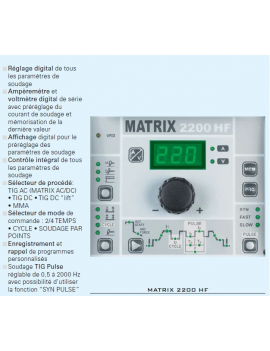 - Affichage digital de la tension et de l’intensité (avant, pendant et après soudage)
