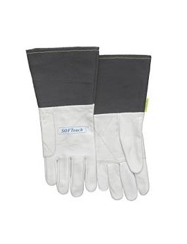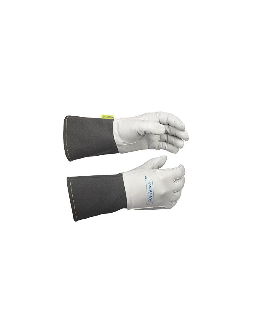Gant de soudeur souple et solide, en chèvre pleine fleur. Les manchettes sont en tissu gris retardateur de flamme. Cette paire offre au soudeur une très bonne sensibilité tactile.