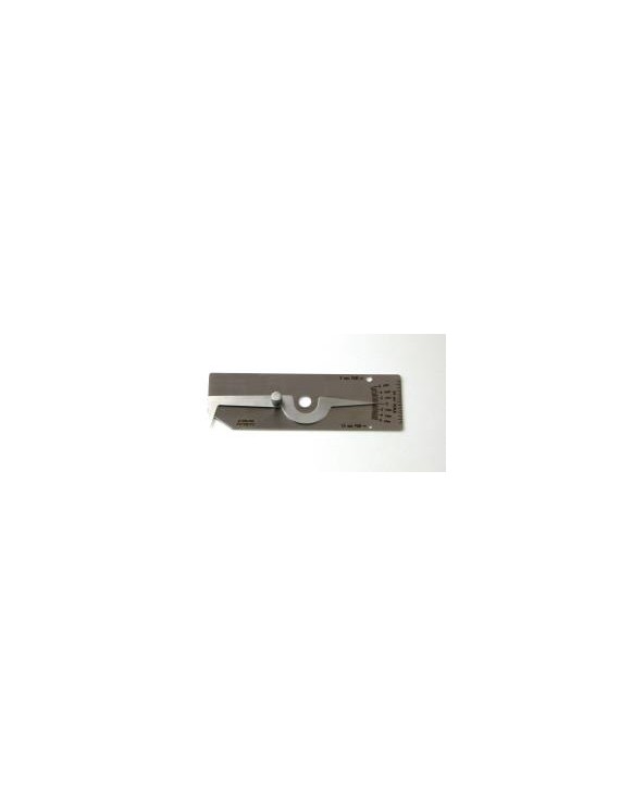 Jauge permettant la mesure (en mm) de la profondeur des caniveaux, la surépaisseur des cordons bord à bord. Cette jauge permet aussi de quantifier la taille des porosités par comparaison avec des trous calibrés.