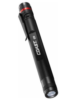 Lampe torche à LED G20.Longueur de 14,5 cm. Boîtier en aluminium noir avec clip. Faisceau optique. Led blanche avec en sortie jusqu'à 36 lumen. Distance du faisceau : jusqu'à 24 mètres. Résistant aux Chocs et à l'eau. Deux piles AAA (incluses). Jusqu'à 12 heures d'autonomie.
