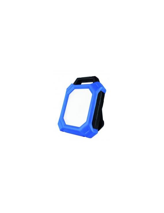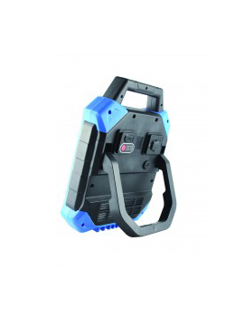 Projecteur LED, chantier PRO, à l'épreuve des chocs, des projections de poussière et d'eau, IK08 et IP54. Boitier ABS, gomme bleue antichoc. Polyvarbonate antichoc et anti-éblouissement. LEDs SMD longue durée, 6000K. Etrier ajustable 4 positions. ntensité ajustable sans paliers. Indicateur lumineux de niveau de charge. Prise USB 5V/1A pour charge téléphone. Compatibles Trépied- réf.810128.