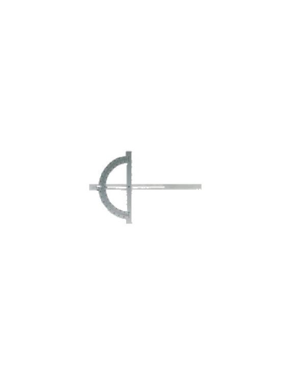 Acier trempé. Lg de la règle : 400mm. Règle coulissante. Blocage par vis. Secteur de 200mm évidé pour mesures d'angles de 10 à 170°. Poids : 420g