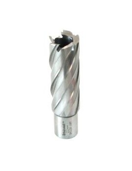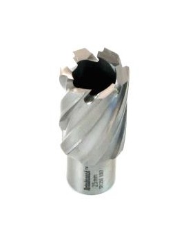 Réaffûtable.Grâce à la rectification de son listel, cette fraise permet un bon développement des copeaux. La conception de sa denture permet la réalisation de 3 ou 4 copeaux suivant le diamètre de perçage afin de diminuer la puissance moteur.