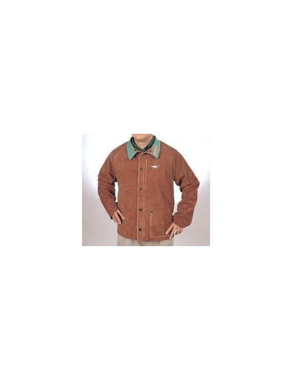 Veste en croûte traitée anti-chaleur. Entièrement cousue kevlar, boutons isolés électriquement, manches doublées satin pour un plus grand confort. Poche intérieur. Excellent rapport qualité/prix.