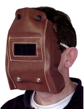 Masque portefeuille en cuir souple pour opération de soudage. Avec serre-tête élastique, recevant un verre minéral soudeur 105 x 50 non fourni (Teinte 11 ) et un écran en polycarbonate incolore 105 x 50 non fourni.