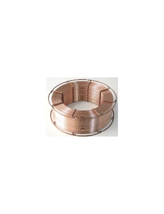 Fil de soudage fourré tubulaire cuivré, utilisable sous tout gaz adapté au soudage (CO2, mélange Argon-CO2,...) pour rechargement dur (500 à 600 BRinell hors dilution et suivant conditions de refroidissement)