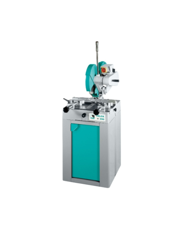 Coupe 45° droite à 45° gauche + 45° biais.Scie manuelle à fraise scie VELOX350 pour couper de 45° droite° à 45° gauche+45°biais les profils et pleins en aluminium ou alliages légers avec une précision et finition de coupe excellentes.Bouton poussoir de démarrage rotation fraise dans la poignée.Plan de travail grandes dimensions avec disque central tournant sur billes.Deux étaux frontaux (ouverture 200mm) à serrage rapide.Mâchoires galbées en aluminium s’adaptant à de nombreux profils.Mâchoires interchangeables.Base avec réservoir et électropompe pour le liquide de coupe.Arrêts automatiques sur les positions 0-15°-30°-45° droite et gauche.Verrouillage possible sur autres angles avec échelle graduée