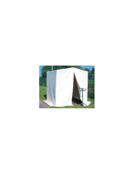 Tente de protection pour soudage / chantier dimensions: 200x200x220 cm (hauteur centrale). Protège des intempéries et du vent. La toile est en PVC blanc mat (630 g/m²). Deux ouvertures sont disponibles, une en façade avant et la seconde en partie arrière se fermant à l’aide des oeillets et des sangles prévues à cet effet. Equipée sur tout le pourtour d’une bavette de protection de 200 mm de large assurant une bonne isolation contre les intempéries. La structure en tubes galvanisés de 25 mm de diamètre.